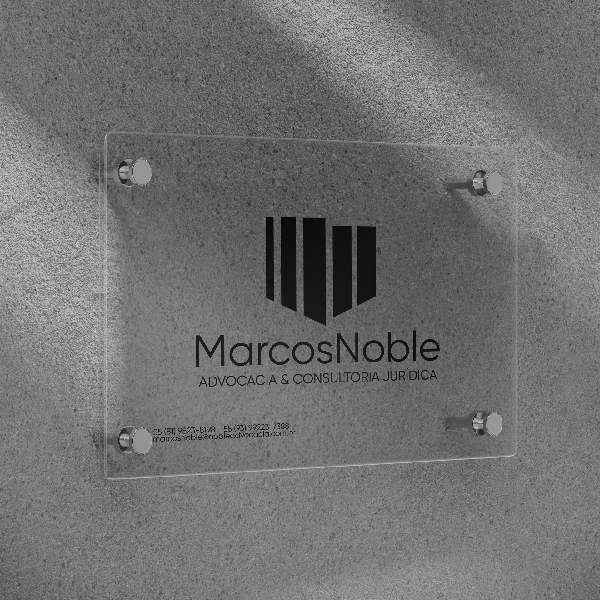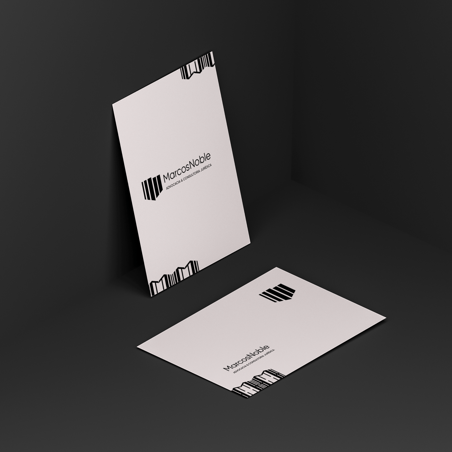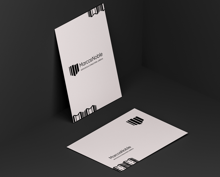 Por meio de uma junção do M e do N, através do contraste do P&B (Preto e Branco), foi elaborado um elemento gráfico abstrato que representa a solidez e consistência, presentes na essência do Marcos Noble.