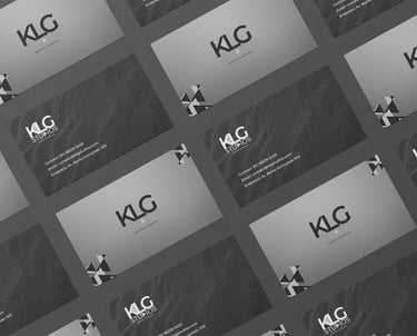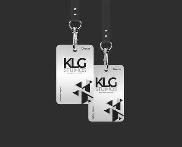 A combinação das formas geométricas e a simplicidade da paleta de cores reforça o posicionamento da KLG Studios como uma empresa inovadora e confiável.